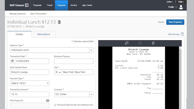 No credit card information required. Once we set you up using your business domain, you’ll be able to see what it’s like to configure your site. You can also capture receipts with your mobile device and experience how Concur Expense automatically scans the information into an expense report.