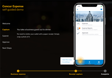 This option is for those who want to get a quick, high-level look at how easy it is to capture, submit, and approve expenses from anywhere. To try the demo, all you need to do is click below, follow the prompts, and see what Concur Expense can do.