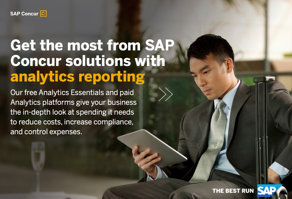 Our free Analytics Essentials and paid Analytics platforms give your business the in-depth look at spending it needs to reduce costs, increase compliance, and control expenses. Take advantage of these valuable reports and dashboards available to you and get the most from your SAP Concur solutions.