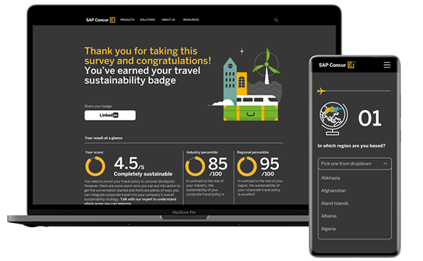 Before you can build sustainability into your travel program, you need to know where your business is today. That’s why we’ve created a quiz to help you assess your corporate travel sustainability and see how your business compares to others in your industry and region.